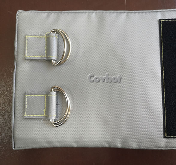 閥門保溫套結構新穎,通過采用耐高溫魔術貼加拉帶配合,快速進行拆卸和安裝,便于人們的使用,通過硅酸鋁耐火纖維毯等的使用,增加抗拉強度,耐火耐高溫,增加熱穩定性,以及通過緊口組件的使用,增強閥桿上的緊固效果,便于更好的保溫。