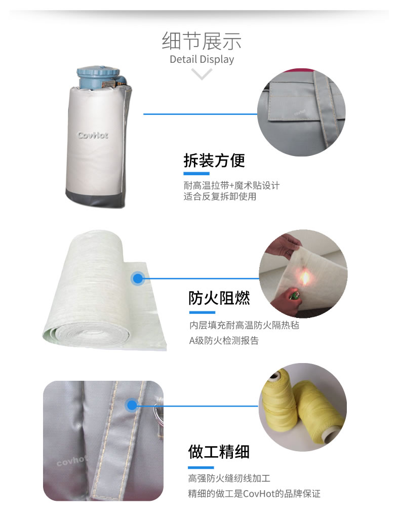 1. 可拆卸保溫套將儀器儀表易凍或怕凍的部位包起來,科好特可拆卸防凍保溫衣內(nèi)部有針對低溫防凍的保溫材料,導(dǎo)熱系數(shù)低,可以起到很好的防凍保溫效果。